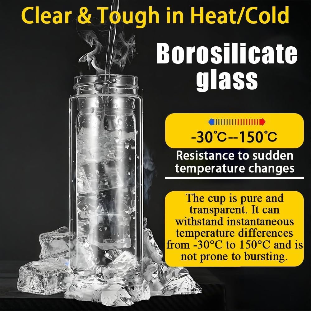 - 3-in-1 Versatility: This tea infuser bottle as a tea infuser, a fruit infuser, or remove the filter to turn it into your everyday water bottle—meeting multiple drink needs in one stylish design; Enjoy a Burn-Free Experience with the Double-Walled Glass Insulation That Keeps the Exterior Cool to the Touch.