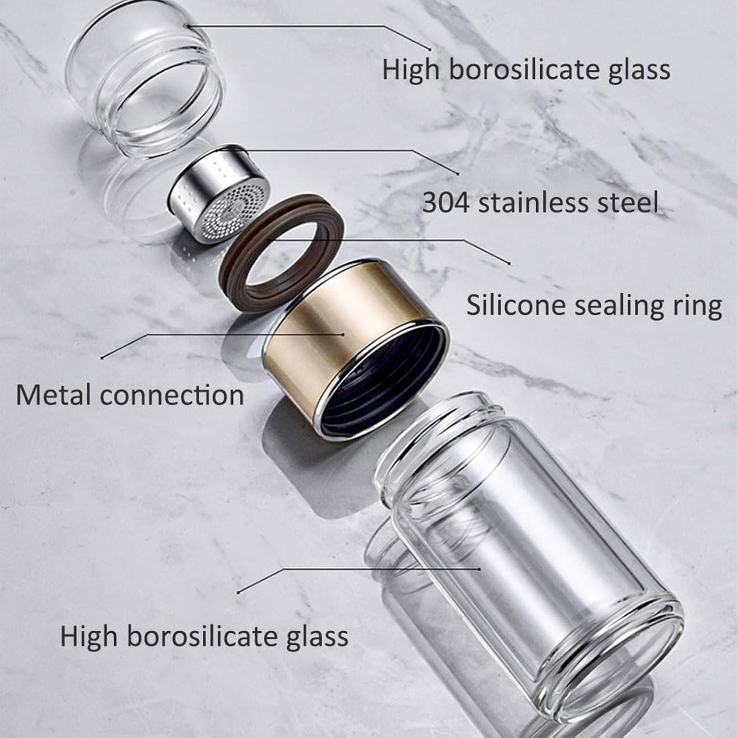- 3-in-1 Versatility: This tea infuser bottle as a tea infuser, a fruit infuser, or remove the filter to turn it into your everyday water bottle—meeting multiple drink needs in one stylish design; Enjoy a Burn-Free Experience with the Double-Walled Glass Insulation That Keeps the Exterior Cool to the Touch.