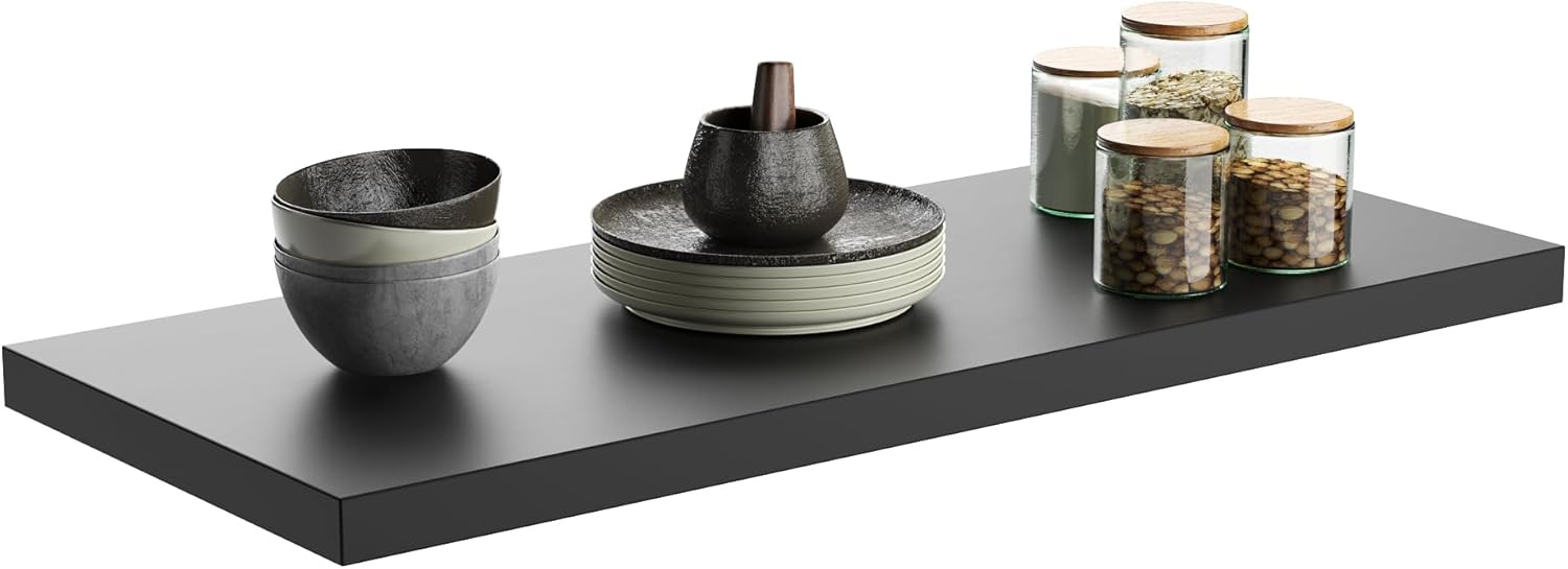 Wall Shelf Set of 1, Black Floating Shelves 36 in W x 10 in D x 1 in H, Wooden Floating Wall Shelf with Invisible Brackets for Living Room/Bedroom/Bathroom/Kitchen Storage and Decor