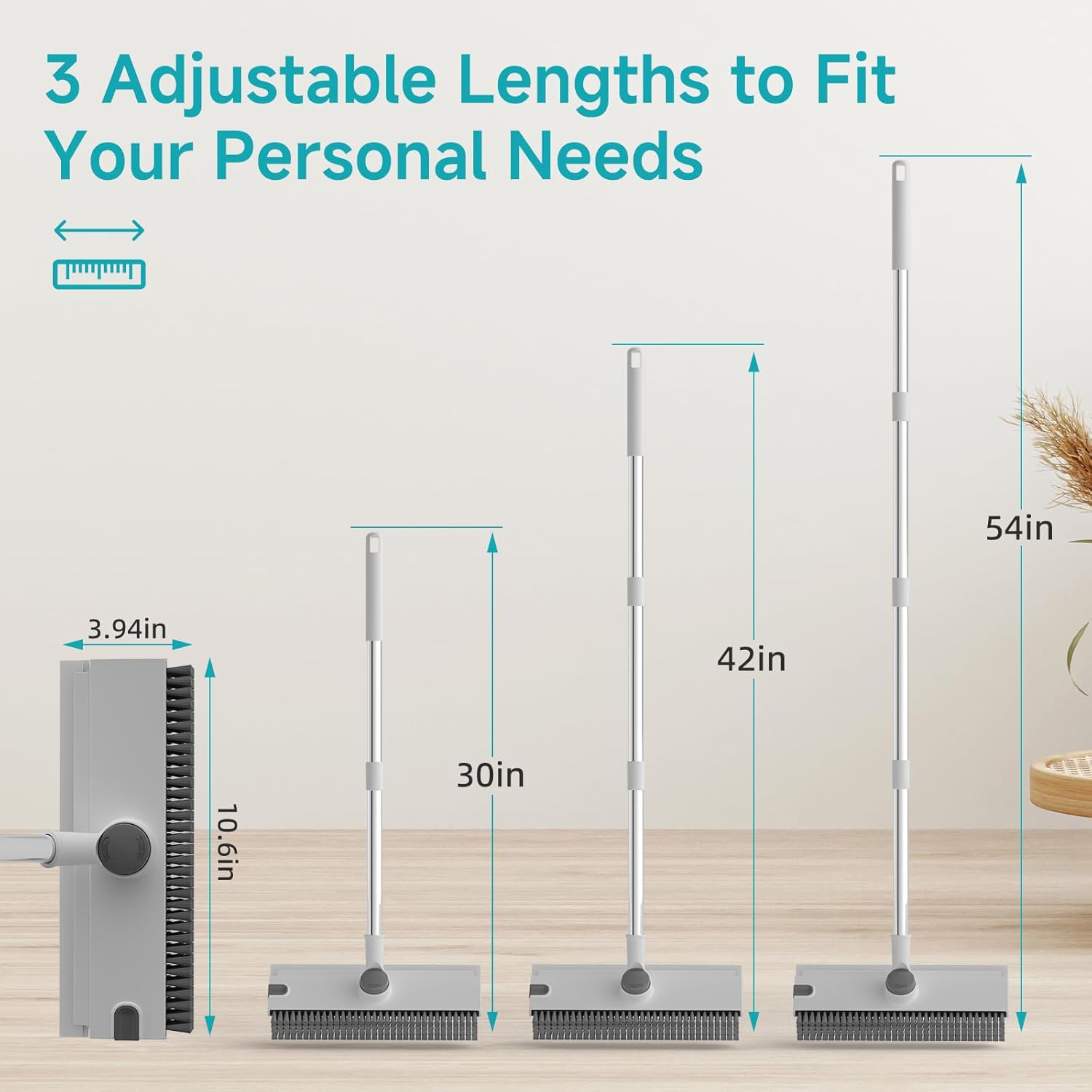 - 【Durable Materials for Wet/Dry Use】The PVC bristles are tough enough to handle regular use but gentle on tile, hardwood, and concrete floors; the stainless steel pole won’t rust, even when used in damp bathrooms, and the silicone scraper stays flexible to leave floors streak-free. Easy to clean and hang after use.