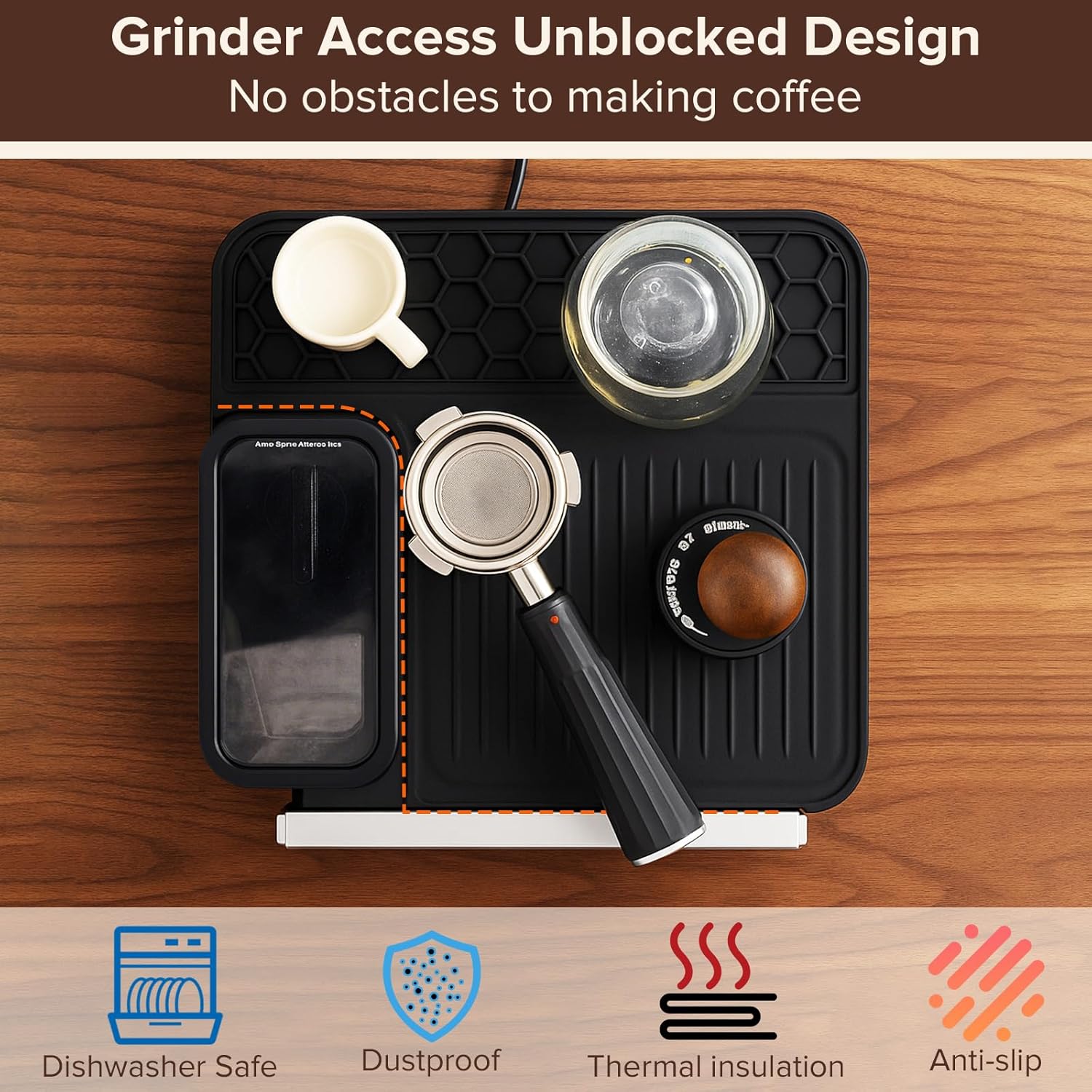 - [Durable, Premium Material]: Crafted from food-grade material, this coffee machine mat resists heat, scratches, slipping and dishwasher. Unlike other alternatives, it won’t deform, or produce unpleasant odors. Built for long-term durability, it delivers reliable performance that matches your coffee ritual, giving you a sturdy and safe protective layer for years to come.
