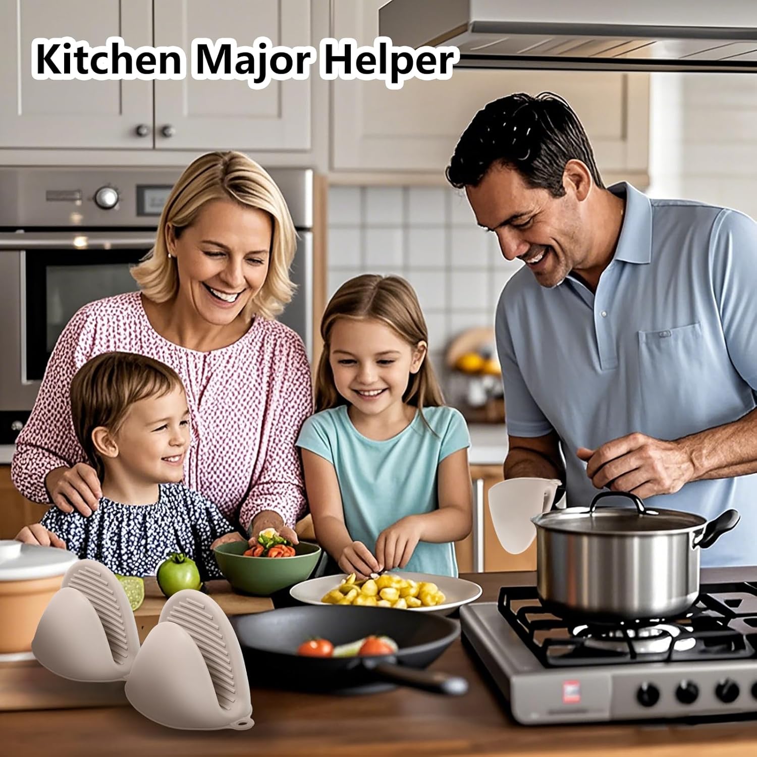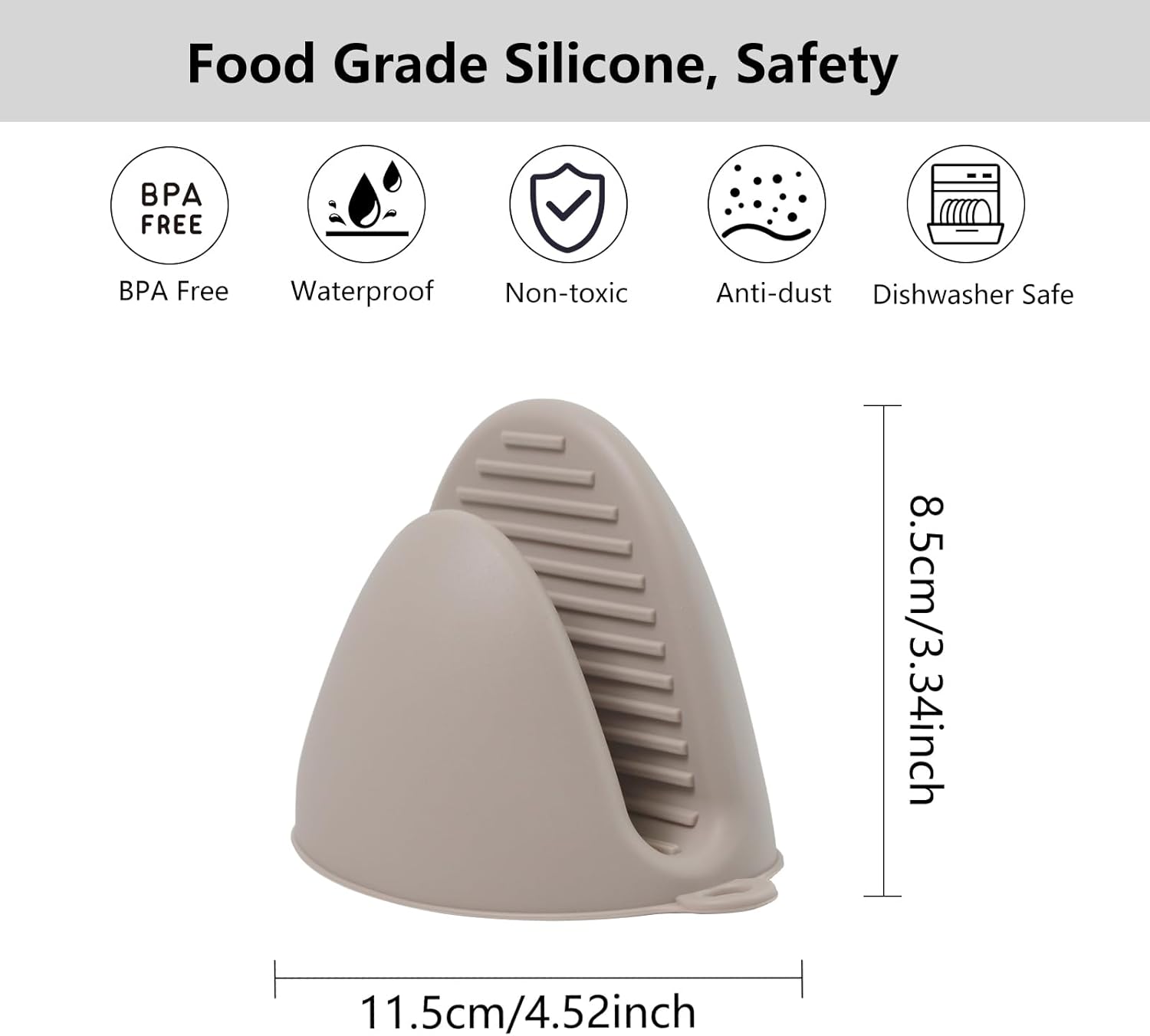 Silicone Oven Mitts Heat Resistant 3 Pair Mini Pot Pinch Grip- ChufanMomsil Short Cute Pot Holders Sets for Kitchen, Air Fryer, Baking, Small Silicone Rubber Oven Gloves Mittens, Khaki