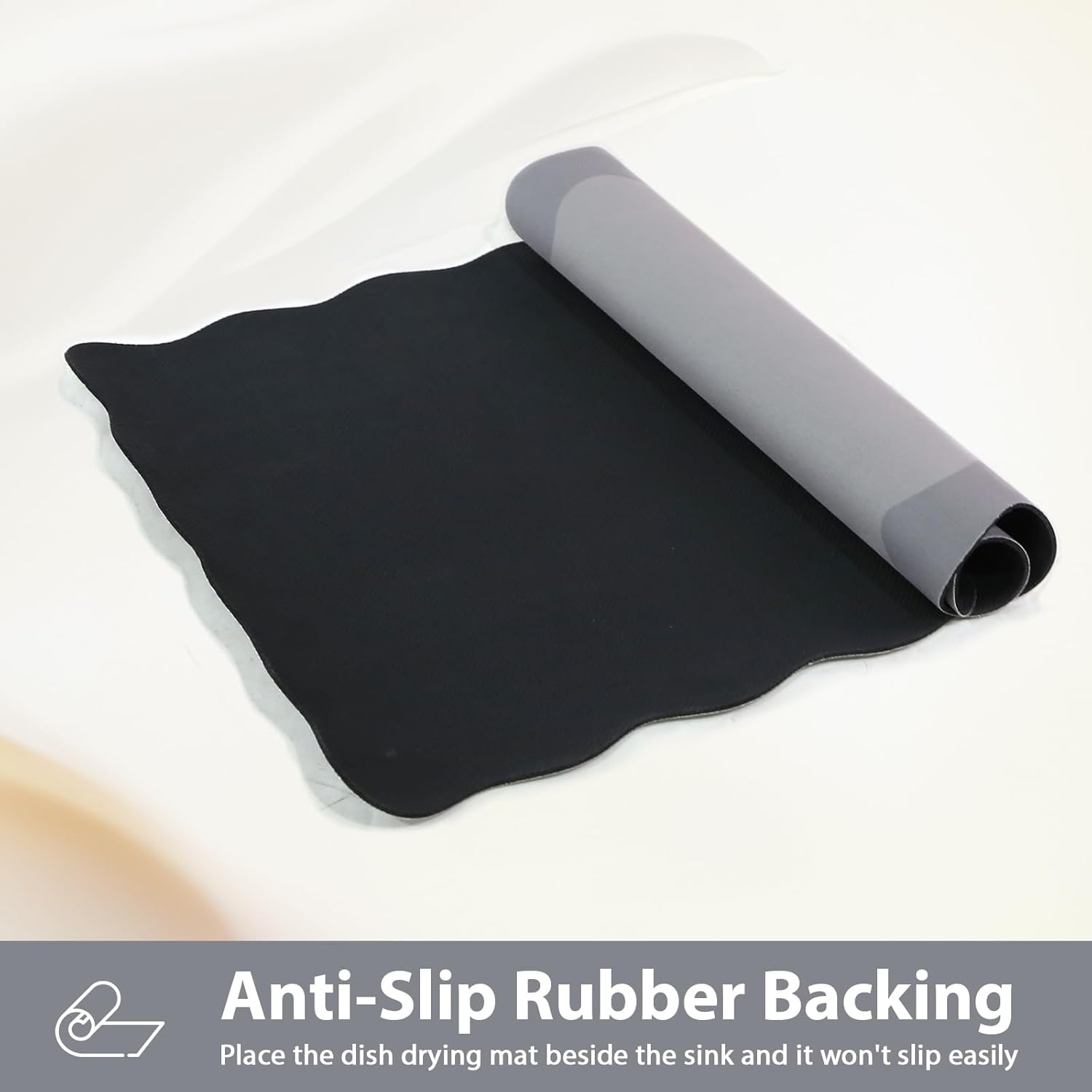 - Diatomite Material & Quick Dry: Our scalloped dish drying mats are made of Diatomite Material, which is different from others. When water drips from the dish rack onto it, our drying mats will get dry after about 8-10 seconds, which keeps your table dry