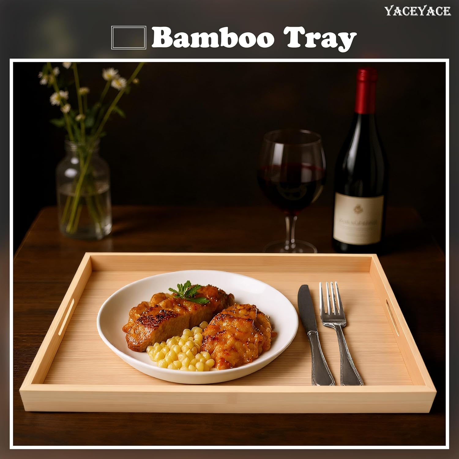 Serving Tray Decor, 15"x10"x1.5" Medium Bamboo Serving Tray for Bed, Home Decor, Food Tray for Coffee Table, Dining, Bar, Ottoman, Breakfast