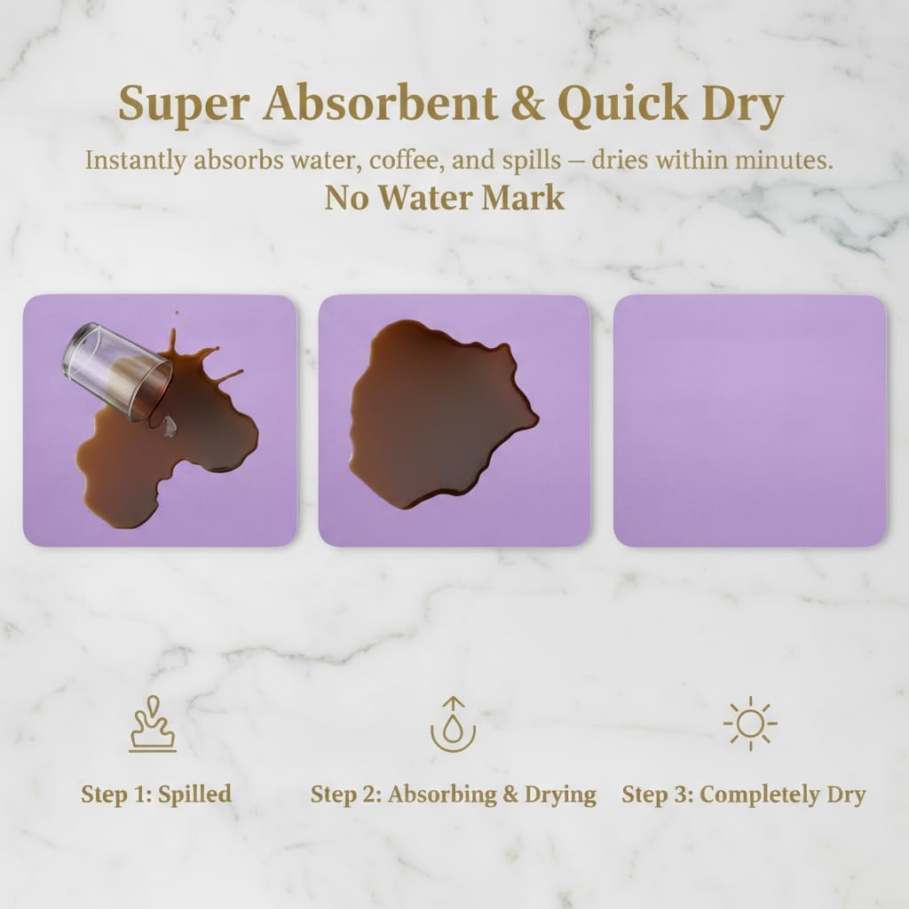 Dish Drying Mat Super Absorbent – 16" x 18" Coffee Mat for Countertops – Non-Slip Drying Mat for Kitchen Counter – Easy to Clean Water Absorbent Mat – Large Dish Drying Mats (Lavender)