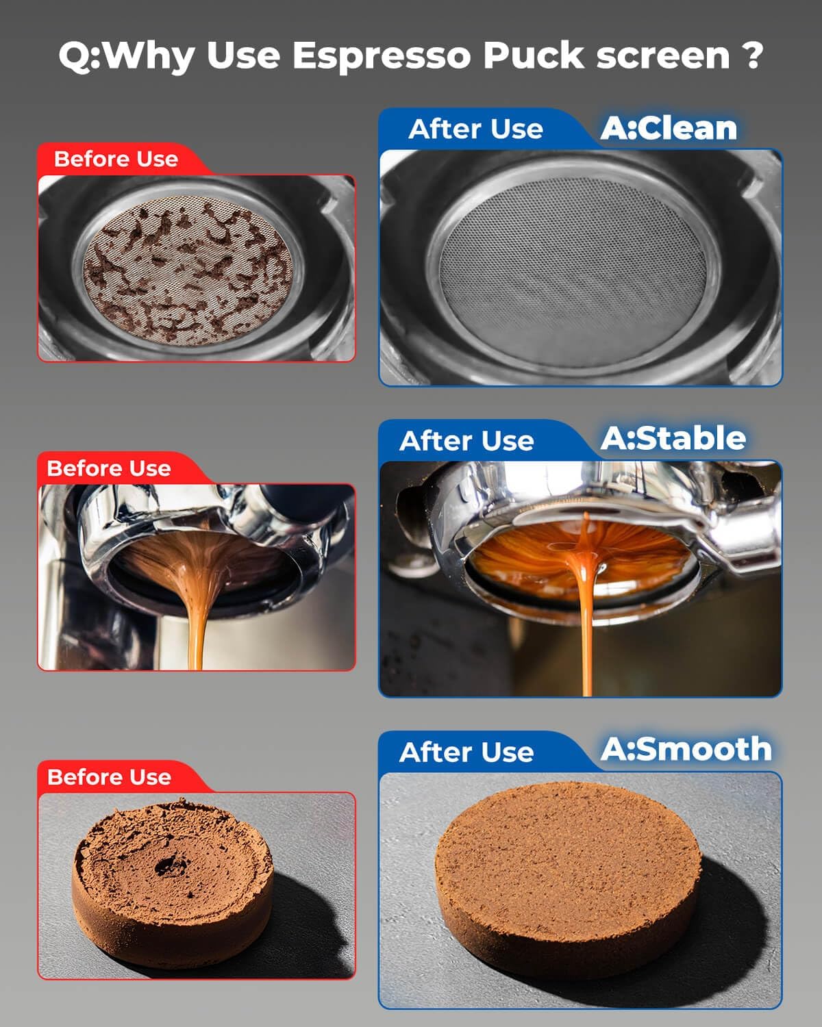 - 0.2mm THICKNESS PUCK SCREEN - Redefines espresso puck screen standards with a thinner, more precise design compared to the 1.7mm version. You don't have to worry about deliberately reducing the amount of grounds. Note: Not recommended for dishwasher use.