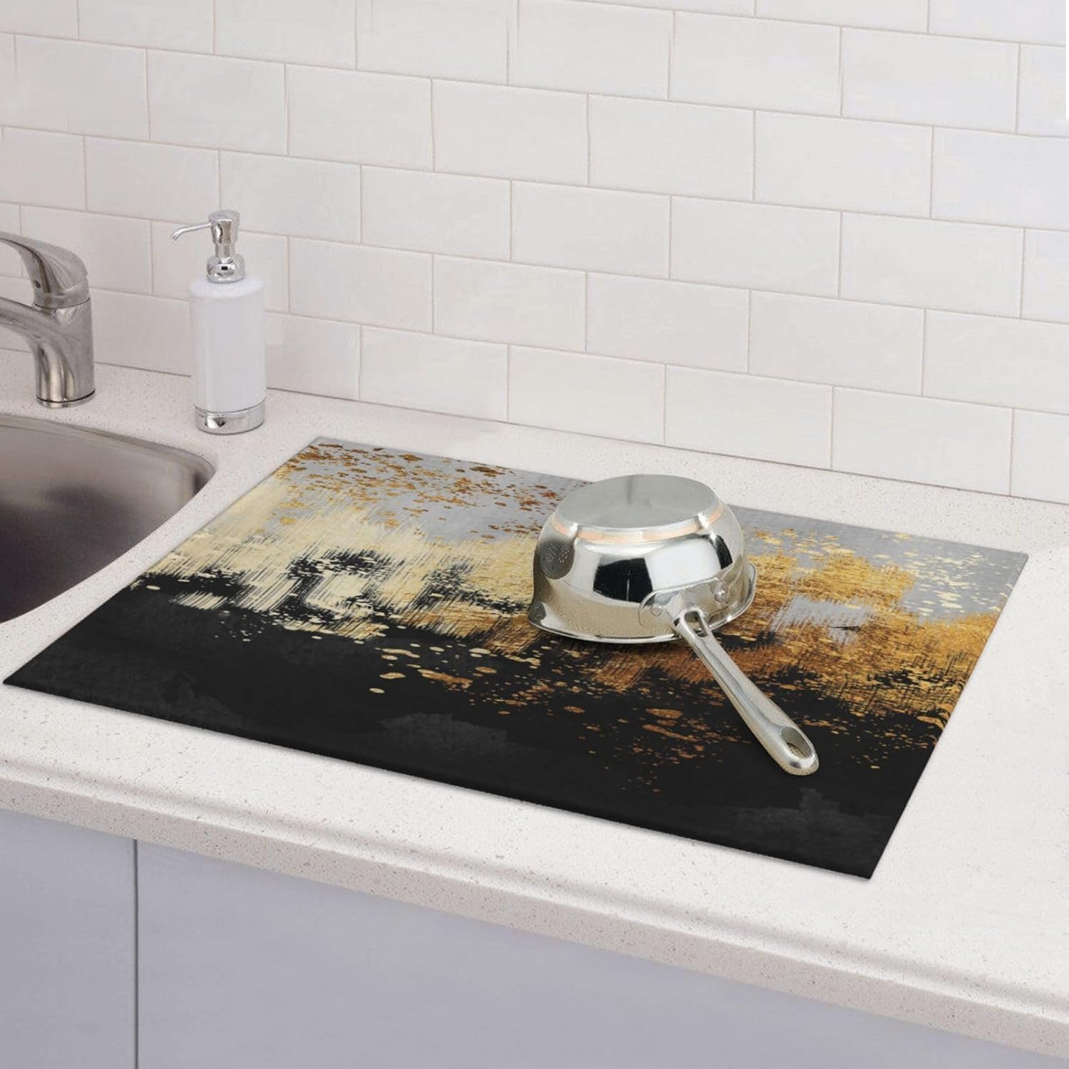 - Premium Microfiber Material: This black gold art splash dish drying mat is made of high-quality microfiber, making it an absorbent drying pad that quickly soaks up water, keeping your kitchen counter dry. The durable material ensures long-term use, ideal as a dish drying pad for kitchen counter