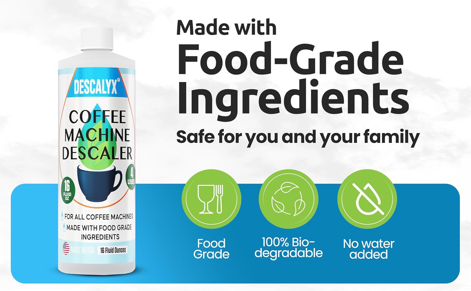 Coffee Machine Descaling Solution | 16 oz (4 uses) | Keurig Breville Nespresso Cuisinart | Coffee Machine Liquid Descaler Cleaner | Automatic Coffee Makers & Espresso Machines. Made in USA